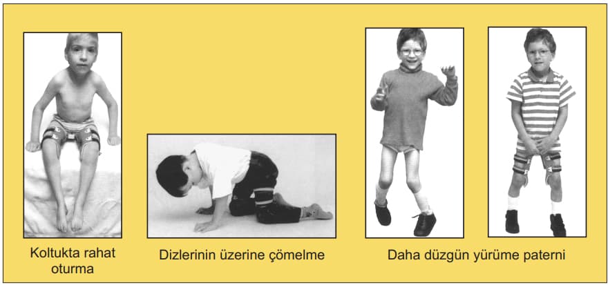 RGO ortezinde her iki kalça birbirine çelik bir yay aracılığıyla bağlıdır. Kalça eklemlerimizden birini hafifte olsa öne doğru hareket ettirmemiz (fleksiyon) mekanik bir gerilim doğurur ve diğer kalçamızın ters yöne hareketini sağlar.(ekstansiyon momenti) Dolayısıtla özellikle kalça eklemlerinden birinden bükme (aktif fleksiyon) yetisi olan vakalarda çok başarılı neticeler alınmıştır. Her adım atışta tekrarlanan resiprok yürüyüş kalçaka kontraktür oluşumunun önüne geçer. İkili hareket kabiliyetine sahip kalça eklemini ayakta durdurduğumuz esnada kilitleyip oturacağımız esnada tamamen serbest pozisyona getirebiliriz. Eller serbest olarak hem ayakta durabilme hem de cihaz adaptasyon sürecine paralel yürüyüşlere başlama çocukların erken gelişim dönemlerinde fizyolojik, iskelet ve piskolojik yönlerden sağladığı destek, cihazın başlıca faydalarındandır. 30 derecenin üstünde kontraktürü olmayan, mental sorunu bulunmayan çocuklar için ortalama 2 yaş uygulama için uygun kabul edilir.